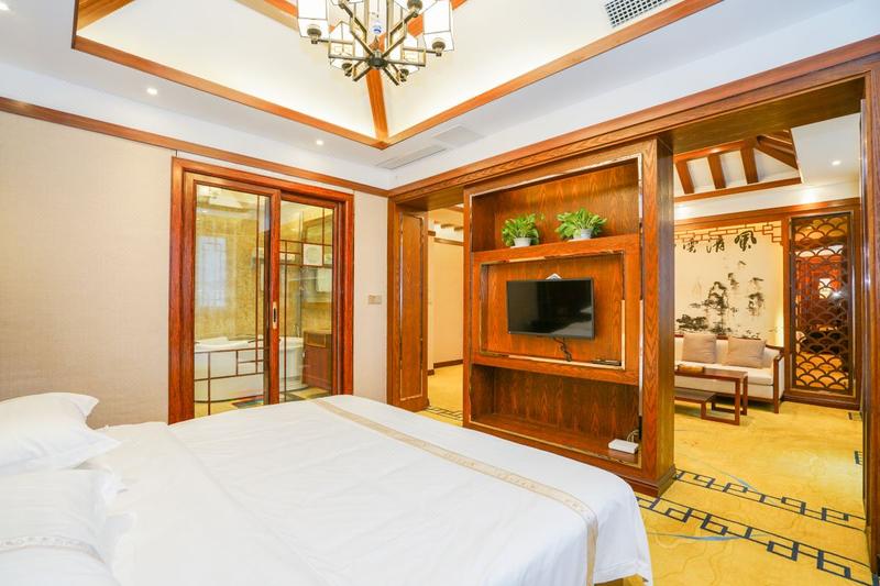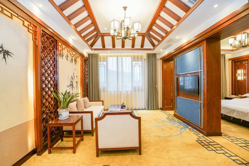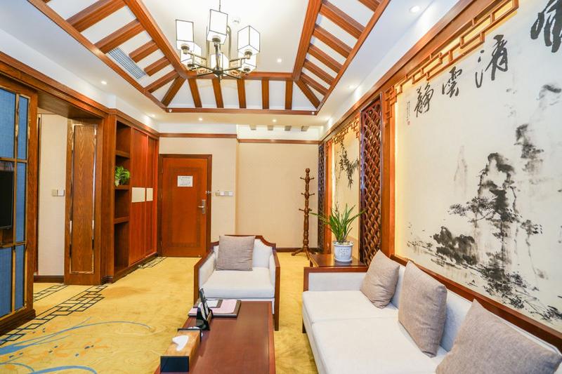 聚鑫大酒店位于苍溪县梨博园,是一家集餐饮,住宿,商务,休闲,宴会于一体的综合型酒店。四周风景灵秀,引人入胜,左靠湿地公园,梨博园,右临水上乐园,出门游玩极为方便。酒店以非物质文化遗产——秀艺真丝挂毯文化为核心,以用心服务好每一位客人为理念,只为与您一起俯看人间烟火,品尝天府之味,看那一袭淡绿的薄纱,身染一地粉嫩浅白,携一路沁人的花香,入住归眠。