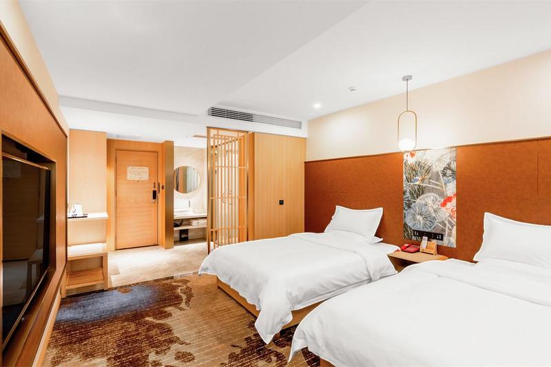坐标:遂宁市高新区物流港汽车百货国际广场C13栋 周边配套:距国际会展中心5分钟车程,遂宁南高速口3分钟车程 ,城南汽车站5分钟车程 ,第一人民医院5分钟车程,高新区管委会步行5分钟,加油站步行5分钟,义乌商业广场步行5分钟,喜盈门建材广场步行10分钟,纵横批发市场5分钟车程,绿然国际学校5分钟车程。 景点距离:距观音故里灵泉寺景区20分钟车程,广德寺景区15分种车程,龙凤古镇20分钟车程,七彩明珠景区20分钟车程,圣莲岛景区20分钟车程,鹭栖湖城市公园步行10分钟。 客房:酒店是集客房、会议、茶楼、棋牌为一体的综合性酒店,拥有各式单间、标间、影院房、浴缸房、亲子房、棋牌室等。 智能会议厅:酒店多功能会议厅可同时容纳150人,配备LED电子屏及高清投影,高保真音响,满足不同商务会议需求。 免费停车:酒店门口有超大免费地面停车场,满足各种私家车、商务车以及旅游大巴的停放。酒店旁边还有免费的地下停车场,为您的隐私保驾护航! 免费服务:酒店为所有住店客人提供自助洗衣烘衣,自助打印复印以及百项免费服务。