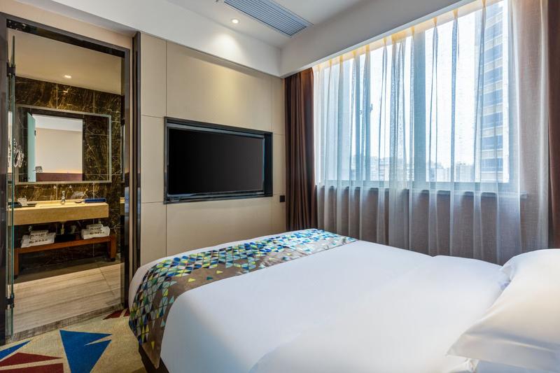 酒店位于遂宁市河东新区五彩缤纷路,配有大型停车场,毗邻观音湖,圣莲岛、遂宁市会展中心、市政府,距离遂宁市体育中心、河东管委会、河东湿地公园约15分钟步行路程,距离灵泉寺、老城商务区等景区约十五分钟车程地理位置优越,交通出行便利。 潮漫是铂涛集团旗下的一家社交型精品酒店,以色彩、年轻为主题!酒店客房时尚高雅,浪漫舒适,气质非凡,俯瞰涪江、遥望圣莲岛,内部设施设备高档轻奢!期待您的入住,酒店必将以真诚的服务,让您住的舒心,睡得安心!