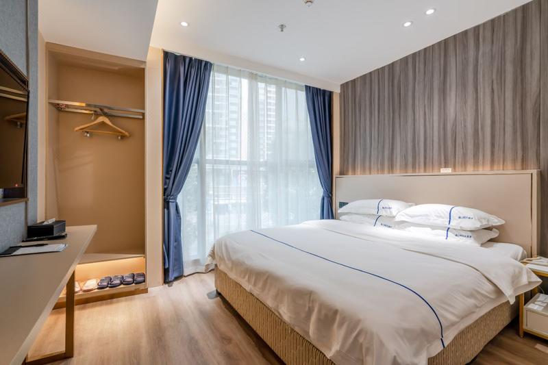 遂宁海上明月大酒店位于遂宁市河东新区五彩缤纷路,坐落于河东新区4A级景区-观音湖湿地公园内,毗邻观音湖、遂宁市体育中心、遂宁市政府、万达购物广场、海洋馆公园。地理位置优越;酒店正对面为鼎盛国际商业中心,吃穿娱乐一应俱全,距离观音故里灵泉风景区约3分钟车程,距离中国皇家禅林广德寺风景区约10分钟车程,距离圣莲岛约5分钟车程,距离龙凤古镇约15分钟车程,交通出行方便,是成渝两地商务人士商旅出行、旅行达人休闲度假的理想目的地。 酒店共三层,经营面积4000余平米,以特具现代时尚、轻奢简约的客房为主,配备有观绿树红花和赏涪江江景的江景茶坊。以现代简约时尚为特色,配备时尚、简约、人性化的设施设备,与湿地景观园林风格浑然一体,让时尚与简约孕育在现代文化之中,彰显现代生活品味。酒店拥有各式房型客房,全落地大玻璃,全涪江江景,全异树绿植,全现代设施设备。 酒店闹中取静,背靠湿地公园音乐喷泉观景台,面对河东商务区,可随时漫步湿地公园,观圣湖美景,体悟“海上生明月,倦鸟归巢时”的回家感觉。