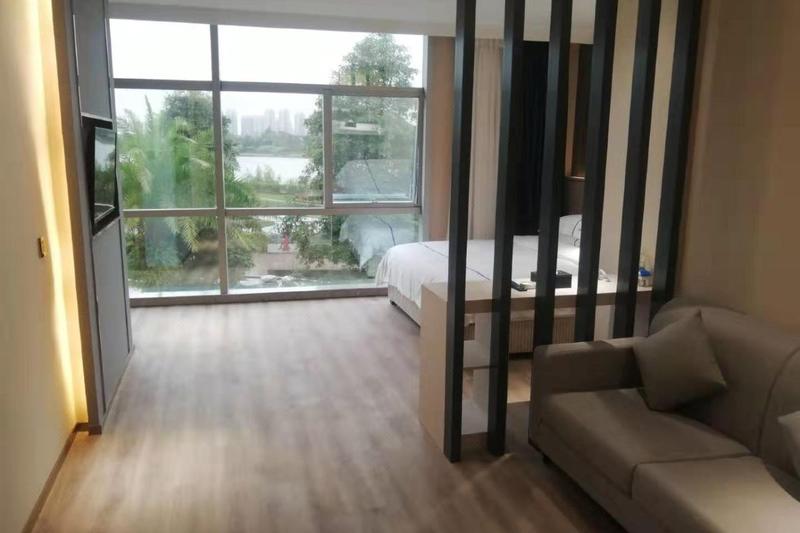 遂宁海上明月大酒店位于遂宁市河东新区五彩缤纷路,坐落于河东新区4A级景区-观音湖湿地公园内,毗邻观音湖、遂宁市体育中心、遂宁市政府、万达购物广场、海洋馆公园。地理位置优越;酒店正对面为鼎盛国际商业中心,吃穿娱乐一应俱全,距离观音故里灵泉风景区约3分钟车程,距离中国皇家禅林广德寺风景区约10分钟车程,距离圣莲岛约5分钟车程,距离龙凤古镇约15分钟车程,交通出行方便,是成渝两地商务人士商旅出行、旅行达人休闲度假的理想目的地。 酒店共三层,经营面积4000余平米,以特具现代时尚、轻奢简约的客房为主,配备有观绿树红花和赏涪江江景的江景茶坊。以现代简约时尚为特色,配备时尚、简约、人性化的设施设备,与湿地景观园林风格浑然一体,让时尚与简约孕育在现代文化之中,彰显现代生活品味。酒店拥有各式房型客房,全落地大玻璃,全涪江江景,全异树绿植,全现代设施设备。 酒店闹中取静,背靠湿地公园音乐喷泉观景台,面对河东商务区,可随时漫步湿地公园,观圣湖美景,体悟“海上生明月,倦鸟归巢时”的回家感觉。