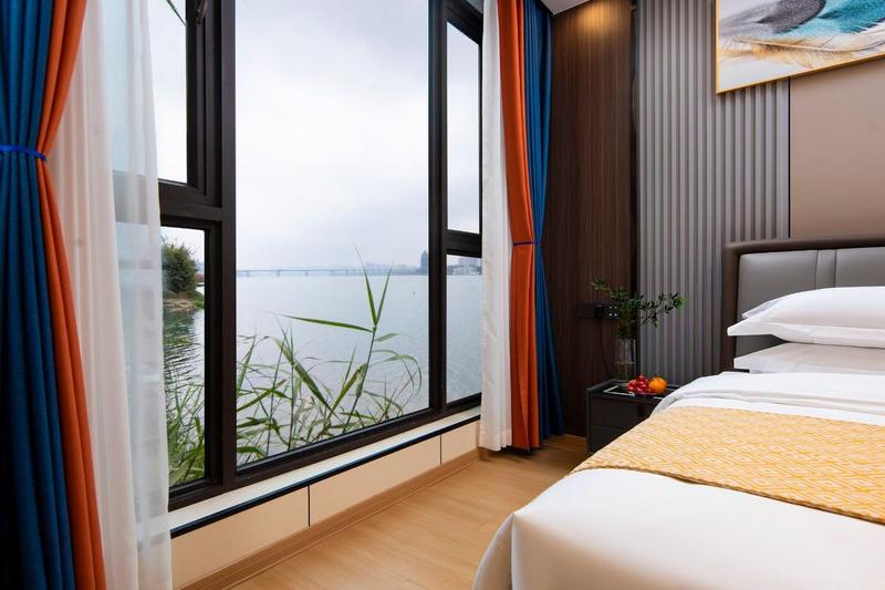 高坪星辰轻奢酒店是南充高坪区的品牌酒店。酒店按星级标准打造,便捷的现代科技风格设计,集住宿、餐饮、娱乐于一体的智能型商务酒店。 高坪星辰轻奢酒店位于南充市高坪区金融中心商圈-恒河,属于高坪区的地标建筑。酒店坐立嘉陵江畔,交通便利,距离高坪机场车程约18分钟,距离南充站车程约8分钟,步行2分钟即可抵达缤纷水岸湿地公园。毗邻万达购物中心、王府井百货,是商务人士及休闲旅客下榻的不二之选,齐全的生活设施,集生活、 旅游、运动、亲子、度假于一身。 酒店全楼层覆盖无线WIFI与智控系统,每间客房配有人工智能助手--“小度”:房间设备开关、影音娱乐、信息查询、生活服务、出行路况等;部分房间还配有智能触屏按摩椅: 舒经活络、安心助眠、休闲放松,同时酒店还免费为客人提供自助洗衣服务,旨在为客人打造宾至如归的现代入住体验。 酒店位于高坪区江东中路四段9号恒河嘉陵江东岸五栋,酒店一楼设有茶房、休息室;二楼三楼设有客房;四楼有客房、餐厅、健身房,在这里为您提供一个自在、轻松的居停空间,能够休息、充电、放松,是您商务出行及旅游休憩的上佳选择。