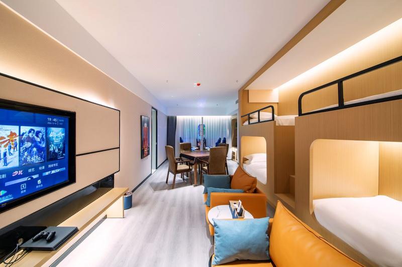 本店位于四川省南充市顺庆区文化路73号报业大厦10F、11F,拥有多种类型客房。酒店内设施齐全,配置完善,全场配备智能家居语音系统,公区配备自助洗衣房,热泵式洗衣机、烘干机,格调大床、四人房、五人房均配置PS4pro游戏机。