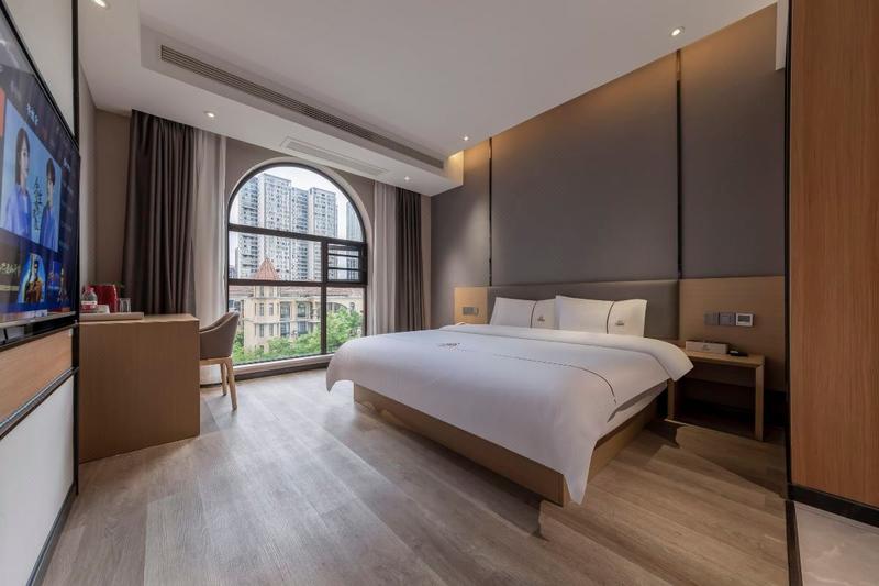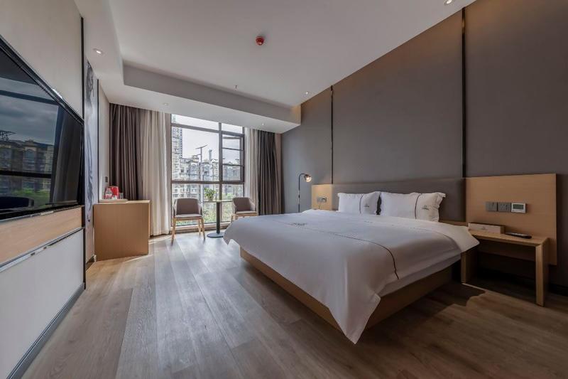 酒店由国内一线轻奢品牌设计师精心设计,装修风格轻奢简洁,是独栋商业打造的中高端定位酒店,200M光纤进入每一个房间,,酒店配备餐厅,消毒烘干一体洗衣房,会议室,商务中心,茶室,麻将房。酒店房间实际面积大都(不含公摊)都在35平米以上,房间全部配备中央空调,进口高档卫浴,全部配备投影大屏电视,零压乳胶床垫舒适层,房间洗浴,卫生间,洗手盆全部分离,充分保证客人入住无互相干扰。3秒热水系统,快速响应客人用水需要。 酒店位于东坡区文安路西一段196号,紧邻市政府和政务中心,市级各单位(卫健委,环境保护局,眉山军分区,眉山市法院,市委党校,房地产管理局,社保局,)近在咫尺,近眉山东站、水街,成乐高速入口。酒店周边商业配套齐备,毗邻春熙广场,万达广场。散步几分钟即可到达。酒店近东坡中学、眉山职业技术学院、四川工商管理学院,眉州大道直线可达。