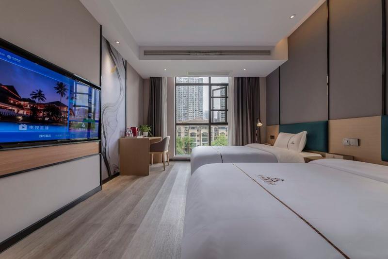 酒店由国内一线轻奢品牌设计师精心设计,装修风格轻奢简洁,是独栋商业打造的中高端定位酒店,200M光纤进入每一个房间,,酒店配备餐厅,消毒烘干一体洗衣房,会议室,商务中心,茶室,麻将房。酒店房间实际面积大都(不含公摊)都在35平米以上,房间全部配备中央空调,进口高档卫浴,全部配备投影大屏电视,零压乳胶床垫舒适层,房间洗浴,卫生间,洗手盆全部分离,充分保证客人入住无互相干扰。3秒热水系统,快速响应客人用水需要。 酒店位于东坡区文安路西一段196号,紧邻市政府和政务中心,市级各单位(卫健委,环境保护局,眉山军分区,眉山市法院,市委党校,房地产管理局,社保局,)近在咫尺,近眉山东站、水街,成乐高速入口。酒店周边商业配套齐备,毗邻春熙广场,万达广场。散步几分钟即可到达。酒店近东坡中学、眉山职业技术学院、四川工商管理学院,眉州大道直线可达。