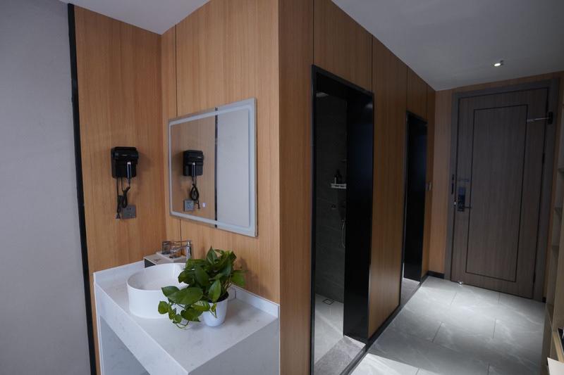 酒店由国内一线轻奢品牌设计师精心设计,装修风格轻奢简洁,是独栋商业打造的中高端定位酒店,200M光纤进入每一个房间,,酒店配备餐厅,消毒烘干一体洗衣房,会议室,商务中心,茶室,麻将房。酒店房间实际面积大都(不含公摊)都在35平米以上,房间全部配备中央空调,进口高档卫浴,全部配备投影大屏电视,零压乳胶床垫舒适层,房间洗浴,卫生间,洗手盆全部分离,充分保证客人入住无互相干扰。3秒热水系统,快速响应客人用水需要。 酒店位于东坡区文安路西一段196号,紧邻市政府和政务中心,市级各单位(卫健委,环境保护局,眉山军分区,眉山市法院,市委党校,房地产管理局,社保局,)近在咫尺,近眉山东站、水街,成乐高速入口。酒店周边商业配套齐备,毗邻春熙广场,万达广场。散步几分钟即可到达。酒店近东坡中学、眉山职业技术学院、四川工商管理学院,眉州大道直线可达。
