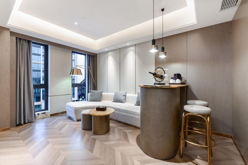宜宾景湖酒店位于叙州区金沙南路东段南岸居然之家内,宜宾市政务中心旁边,酒店毗邻宜宾高铁西站,驾车约10分钟,邻近唐人财富中心,步行仅10分钟路程,美食文化与休闲娱乐区举步可抵。距三甲医院驾车仅7分钟路程,配套多样化出行方式,公交车18路、45路、46路,智轨T1线,交通便捷,酒店设施设备一应俱全,环境优雅是您旅行或商务洽谈的首选之地。景湖酒店共六层,建筑面积5800平方米,设施设备齐全,装修豪华典雅,拥有极具现代感的精致客房,豪华套房和行政客房等一应俱全,全天候高速5G无线网络覆盖,运用先进智能客控系统配套,配备一流的服务设备,以适应商务精英的不同需求。为了满足宾客的多方面需要,酒店还设有茶吧、麻将室、六楼露天茶园等服务设施,使您身心舒缓、尊享贴心服务。
