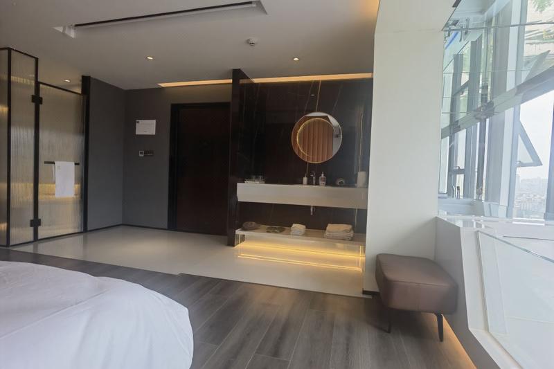 酒店位于华侨城纯水岸,毗邻三江口水幕电影公园,正面万里长江,紧邻华侨城CBD,与冠英古街隔江相望。房间均配备江景私人汤池,让您在放松休息的同时,也能体验万里长江的雄伟壮观。房间均为智能化房间,均配备巨幕投影,在您休息之余为您提供更多的娱乐选择。出行便捷,紧挨连接南岸与老城区的戎州大桥,步行至大观楼仅需要10余分钟。房型配置丰富,能满足您的不同需求。本酒店属于新型酒店,采用无接触式办理入住,入住手续均可通过手机操作,免去了传统酒店必须到前台登记的烦恼。