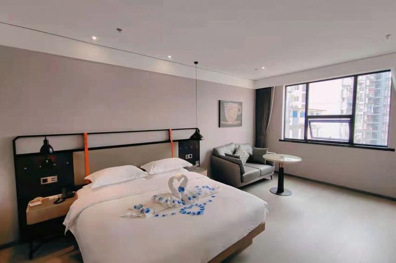 悦森欣高望都酒店隶属于四川悦森酒店管理公司旗下轻奢·社交品牌,由国内知名设计师执笔。酒店致力于通过独特的设计格调和场景,为当地居民和旅行者带来新时代的入住体验。在欣高望都,一切都是便捷的、富于现代思维的,您可以用手机Check-in开房门,用微信智能控制房内空调、灯光、窗帘、电视等设备。而餐厅、酒吧、禅意茶社、屋顶花园、休闲健身房等丰富场景,为您营造出浓厚的社交氛围,让您找到更多志同道合的朋友。作为一家提倡“轻奢态度”的酒店,欣高望都的主基调是年轻、随性、积极向上的。我们鼓励适度、好而不贵的轻消费观。TOTO、ARROW、智能超大投屏电视、CHANDO香氛.....不需要太高的消费,在欣高望都酒店,您都尊享不浮夸但足够有品质的生活体验。”悦“在旅途,”森“情为您!