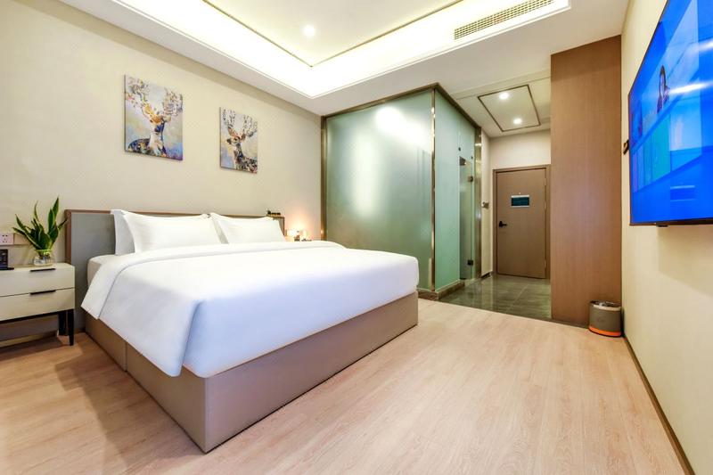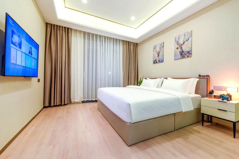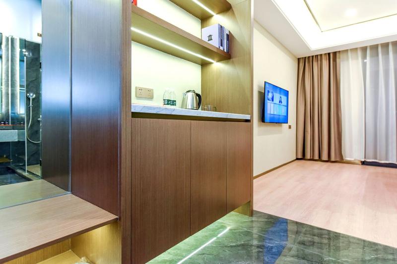 酒店坐落于乐至县二段路南一段906号,是一家集住宿,餐饮和茶楼于一体的中高端精品酒店,酒店共拥有各类客房共计27间和茶楼包房12间,精美的设计风格,舒适的周边环境,是您商务出差,旅行度假,朋友欢聚的理想下榻之所。 [酒店硬件] 大床尺寸2米*2.1米,乳胶床垫,55寸支持投屏智能电视,独立冷暖空调,5秒钟热水,部分房间阳台南湖公园景观,速干吹风机,百兆宽带上网-下载速度7mb/s。 [行政中心] 距离乐至县人民政府仅1.2公里;距离陈毅广场2.3公里; [周边景点] 距离南湖公园50米;距离仙鹤观1.3公里;距离报国寺13公里;距离陈毅故居15公里 [商业中心] 距离中影时代国际影城100米; 距离红星巷美食一条街2.1公里; 距离德克士1.6公里。