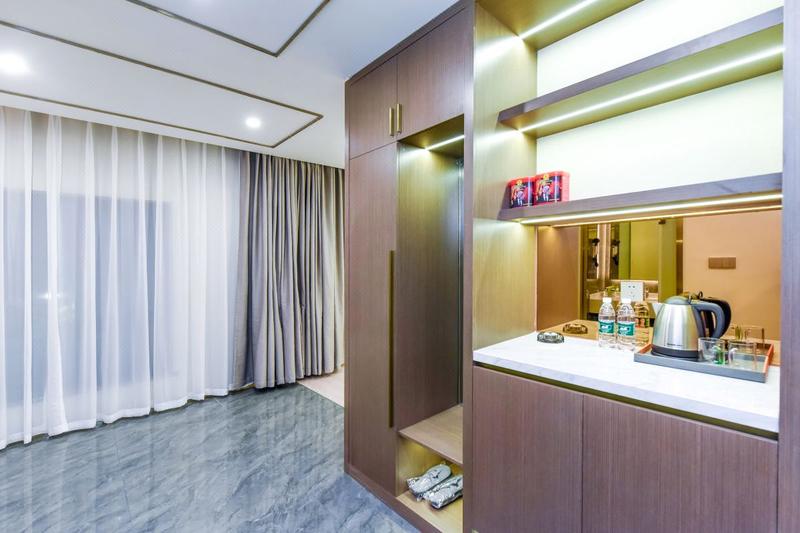 酒店坐落于乐至县二段路南一段906号,是一家集住宿,餐饮和茶楼于一体的中高端精品酒店,酒店共拥有各类客房共计27间和茶楼包房12间,精美的设计风格,舒适的周边环境,是您商务出差,旅行度假,朋友欢聚的理想下榻之所。 [酒店硬件] 大床尺寸2米*2.1米,乳胶床垫,55寸支持投屏智能电视,独立冷暖空调,5秒钟热水,部分房间阳台南湖公园景观,速干吹风机,百兆宽带上网-下载速度7mb/s。 [行政中心] 距离乐至县人民政府仅1.2公里;距离陈毅广场2.3公里; [周边景点] 距离南湖公园50米;距离仙鹤观1.3公里;距离报国寺13公里;距离陈毅故居15公里 [商业中心] 距离中影时代国际影城100米; 距离红星巷美食一条街2.1公里; 距离德克士1.6公里。