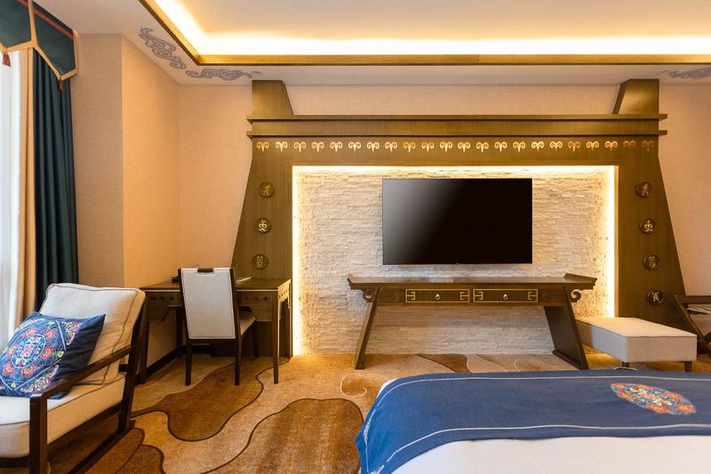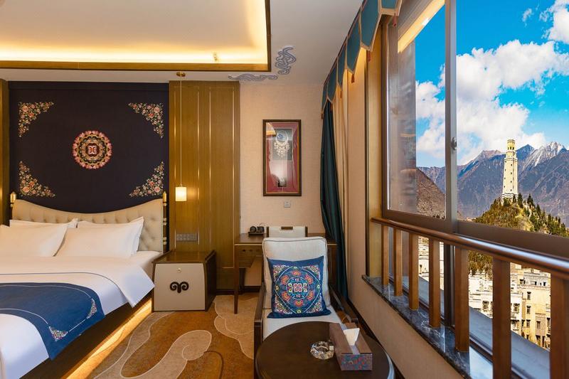 茂县古羌城议话堂酒店位于四川阿坝州茂县,酒店是以羌文化为主题建造的综合性度假型酒店,设施设备及配套均是按高星级标准配置,服务质量优良;外观为羌族碉楼古堡式建筑,聚合浓郁的羌民族风情特点,表现出独有的历史人文背景,同时又具有鲜明个性感和时代感,体现了传统文明与现代文明的交融,是茂县标志性景观建筑。 酒店内部装修以羌文化的羌绣、羊头、碉楼等为主要元素,设计典雅精致、简洁大方,民族特色浓郁。设计充分体现羌文化原生态环境和羌民族生息特点,酒店餐饮娱乐处体现除羌族生活风貌特点,是一处了解、认识羌族风情的舒适驿站。