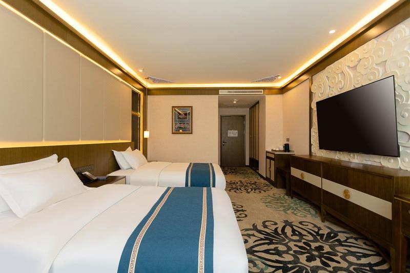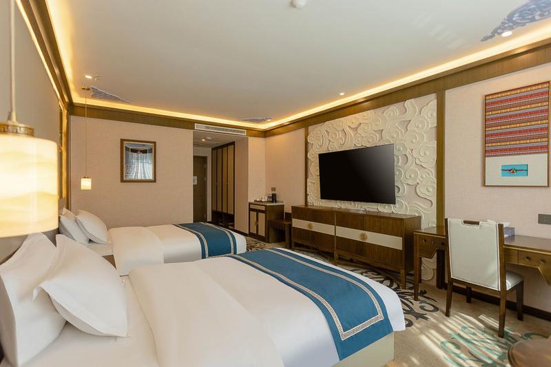 茂县古羌城议话堂酒店位于四川阿坝州茂县,酒店是以羌文化为主题建造的综合性度假型酒店,设施设备及配套均是按高星级标准配置,服务质量优良;外观为羌族碉楼古堡式建筑,聚合浓郁的羌民族风情特点,表现出独有的历史人文背景,同时又具有鲜明个性感和时代感,体现了传统文明与现代文明的交融,是茂县标志性景观建筑。 酒店内部装修以羌文化的羌绣、羊头、碉楼等为主要元素,设计典雅精致、简洁大方,民族特色浓郁。设计充分体现羌文化原生态环境和羌民族生息特点,酒店餐饮娱乐处体现除羌族生活风貌特点,是一处了解、认识羌族风情的舒适驿站。