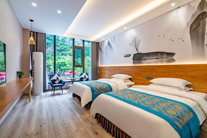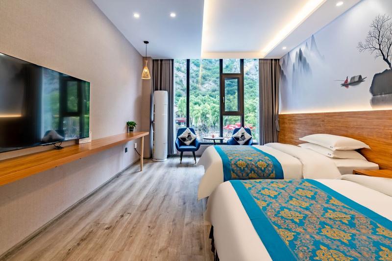 酒店有多种房型供你选择,有家庭套房,特色主题亲子房,情侣大床房,豪标和普标多种选择。房间的落地窗隔音效果非常好,坐在窗前就可以欣赏白水河的小桥与流水,会给你带来非常舒适、轻松休闲的入住环境,关键酒店距离景区很近,到景区走10分钟即到,门口有广场,可以免费参观参与藏羌锅庄舞,酒店自家有院子,可以免费停车,周围小吃一条街,购物吃饭很方便。可代订景区门票,晚会票(详询商家)。给您一个宾至如归的体验。