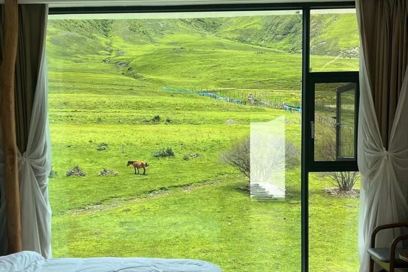 望舒.山居豪华草原180°观景双床房(地暖+加湿器+投影)