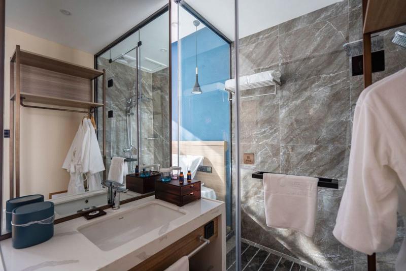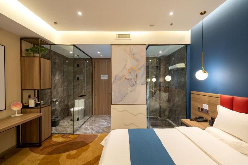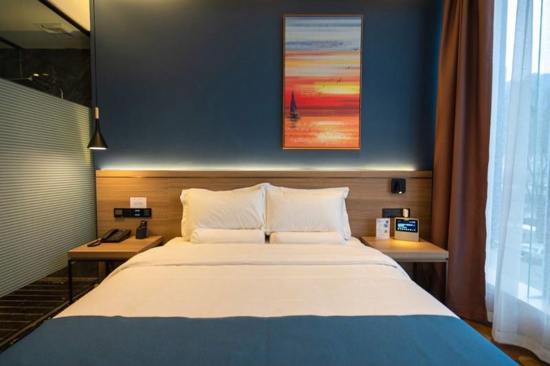 酒店客房全部为全智能房间,各种室内控制都可以“躺着进行”,你只需要动动嘴,房内常见操作都可以轻松解决,你可以通过说话操控灯的开关,可以通过说话开启关闭窗帘,甚至可以通过说话控制空调温度。酒店设有专业的影院房,将电影搬进酒店,采用“酒店+电影”的模式,让宾客在满足住宿需求的同时,也满足观影的需求。酒店所有房间均配备专业零压床垫,零压枕,根据人体七个部位不同着力状况而精心设计,让人体在轻松状态下享受舒适睡眠。酒店位于太原主干道建设南路与长风街交叉口, 距离太原南站3km,太原火车站4.5km,距离太原武宿机场8km,距离长风街北美新天地商圈2km,距离亲贤街茂业天地,王府井商圈1.8km,距离长风文化商务区(国贸第六馆,万象城)4.5km,距离柳巷商圈,太原食品街5km,距离太原长风高速口900m,距离迎宾汽车站400m,建南汽车站1.5km,酒店有停车场,位于太原主干道十字路口,公交,打车都很便利,对面有大型超市,得一文化广场,周边餐饮便利,酒店装修风格时尚大气,为您精心设计各类客房,期待为您提供我们的智慧客房和优质的服务。