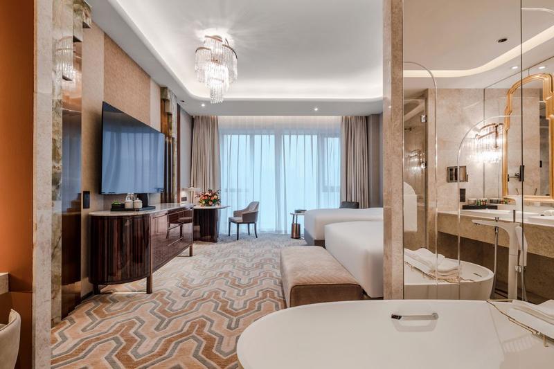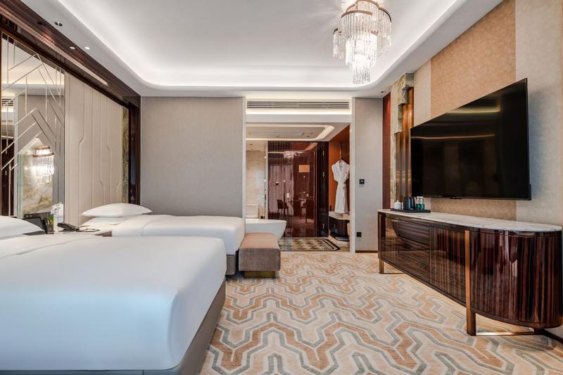 山西大同云冈大酒店是山西金龙集团旗下全资倾心打造的第三家高品质的国际化酒店,也是古城内云冈国际酒店的再续辉煌之作。酒店主体设计是由同济大学设计院担纲,全球著名室内设计公司“HBA”提供室内设计服务,酒店将非凡设计及先进科技与舒适方便的体验完美融合,突出文化内涵与艺术格调的高品质氛围典范。 云冈大酒店是御东迎宾桥畔独具特色的双子座新地标建筑,位于御东CBD商务繁华圈,酒店总建筑面积11万平方米,拥有智能化客房1000间/套,是目前省内单体客房数量之最的酒店,餐饮全域拥有2200平米无柱宴会厅,是高端活动及大型会议必备之选,另有14种专属主题式宴会厅让您尽享视觉文化的完美呈现,彰显尊贵的中西自助餐厅水系围绕其中,犹如置身于大自然般,品鉴美食同时更赋予您轻松惬意的氛围享受。 酒店距飞机场12公里,高铁站3.8公里,距离世界文化遗产云冈石窟18公里,与繁华的商业娱乐圈万达广场及方特欢乐世界咫尺之遥,休闲购物娱乐便利得天独厚,是您商务办公、休闲旅游度假的完美之选。 云冈大酒店旨在打造都市高端奢华酒店及高品质城市生活典范,我们将以发自内心的待客之道,为您创造难以忘怀的美好经历,在这座城市给您一个“家”。