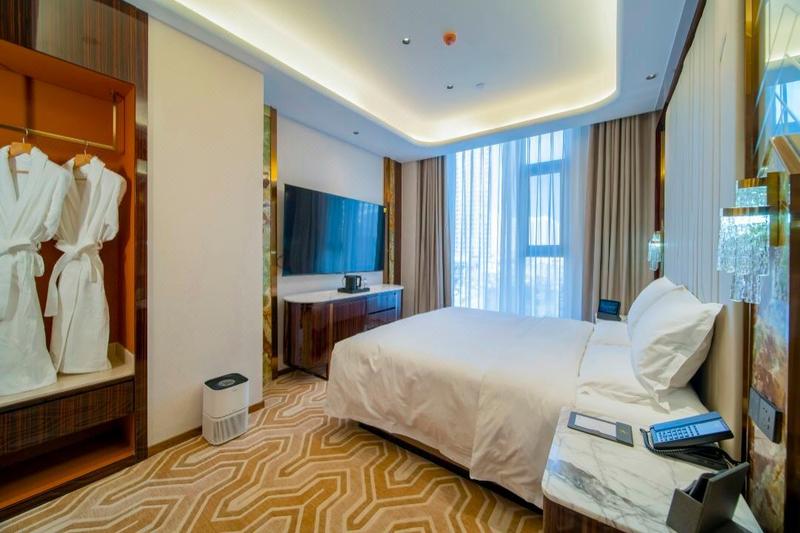 观世界,看东方!东方国贸大酒店是山西东方置地倾注匠心打造的一家集住宿,餐饮,商务会展,高端宴会,娱乐休闲为一体的高端国际化多功能酒店。酒店由知名设计师担纲设计,以传统与现代的交融赋予其独特的人文秉赋,打造高端的六星品质服务平台,引领菁英人文生活品鉴,带给人丰富而美好的文化体验,精致典雅的装修、自然考究的材质,创造舒心悦目、独具艺术魅力的视觉效果。东方国贸大酒店,源于对美好生活的深透理解,秉持对旅居体验的人本关怀,承厚重古都文化,启典雅艺术格调,为不断追求品位与创新的古都大同酒店业增添不凡的内涵。 ·客房,从30至100平方米;58间高端私密会所 ·星级餐饮多功能宴会厅 ·60㎡中端会议室;200㎡配置精良之专业会议室 ·私享休闲健身房;高端健身会所 ·英伦下午茶,不期而遇的休闲时光 ·奢华洗浴spa,至臻至美,缔造深层次优雅放松 ·环境清雅英伦下午茶及时尚书吧 ·十余部高配置商务车有偿提供接送及租赁服