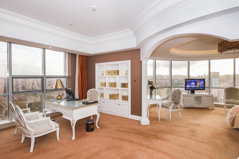 大同国宾大酒店地处御河西路交通主干道交汇之处,位于市委大院岗北,地理位置优越,交通十分便利,与修复一新的东城墙咫尺之遥,距机场30分钟车程,距火车站6分钟车程,能够方便快捷地到达各商贸区和旅游景点。 大同国宾大酒店是由睿和集团有限公司建造,并委托享有国内声誉的北京国宾友谊国际酒店管理公司经营管理的高品质酒店。酒店楼高20层,建筑面积36000平方米,体现了现代新颖的建筑风格,柔和了中国传统文化之精髓及欧洲近代流行的简欧风格。拥有专修精美的各类客房两百余间(套)还有风格各异的餐厅、酒吧,设施完善的健身中心、桑拿中心及娱乐中心,完善的会议服务设施可满足客人不同的会议需求,配置豪华且人性化的行政楼层,让您尽享居住的新概念,是商旅客人极具品位的理想选择。