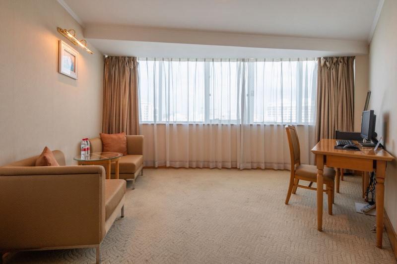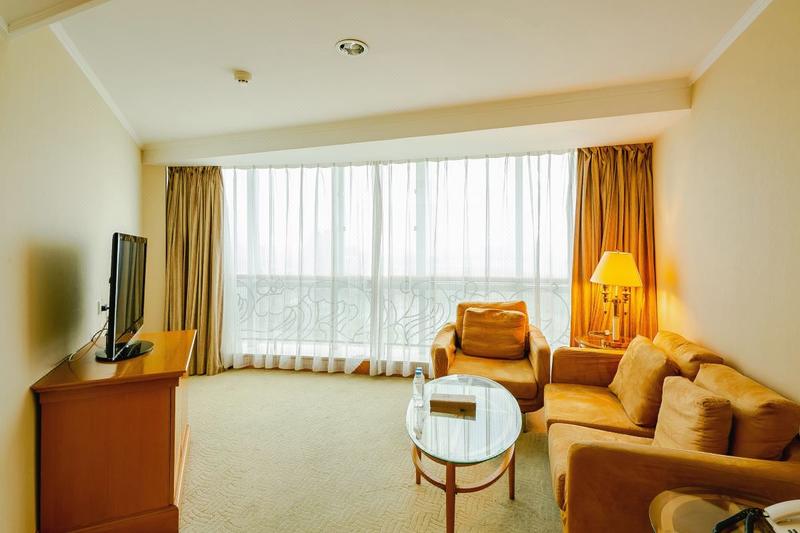 海口黄金海景大酒店位于风景如画的热带旅游城——海口市,南倚国际金融贸易区,北临城市绿化公园--万绿园和烟波浩瀚的琼州海峡,东接客来客往的海口新港,西连热带风情洋溢的西海岸带状公园,地理位置优越,交通便利。 酒店楼高115米,主楼高33层,总建筑面积为 4.28万平方米,恢宏的气势、独特的造型使酒店成为海口市标志性建筑之一。酒店设施先进,设备齐全,拥有各类豪华客房,豪华写字楼(70套),设有可容纳400人会议的宴会厅和多功能厅。 酒店还设有中餐厅、咖啡厅、商务中心、商场等先进的服务设施。其中,31楼旋转西餐厅是旋转观光餐厅,您登高望远、尽兴享受令人心旷神怡。