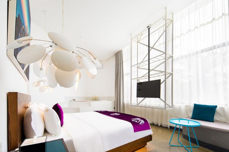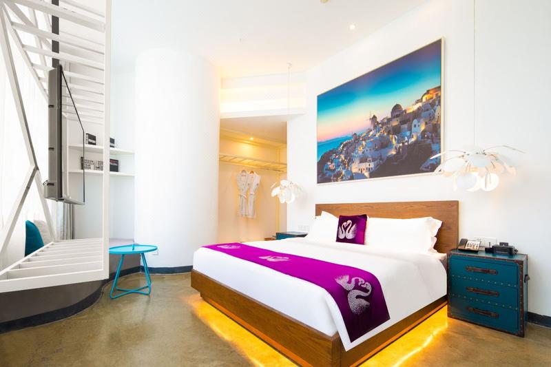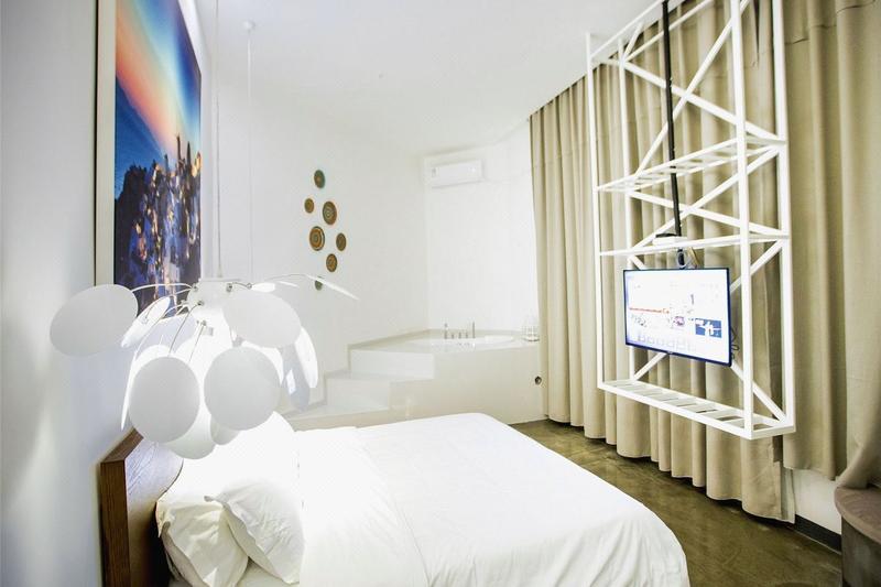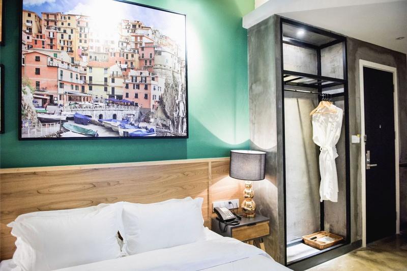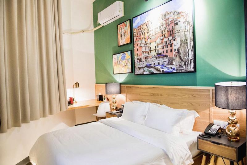 酒店位于海口市海甸岛和平大道(寰岛泰得酒店正对面),地理位置优越,周围餐饮、娱乐、购物等生活配套齐全,出行便利。 这是一家以乐享星球为主题的复古工业风精品酒店,是由景澜精品酒店管理有限公司旗下打造的品牌,采用了多样的设计风格。酒店现拥有全新装修各类不同风格的主题房间共40间客房,每间客房独具一格,可以满足亲子、情侣、商务等多种住宿需求。 酒店通过房间颜色、材质、饰品、挂画等细节的打造,使得每个房间具其特定的城市主题风格,让旅客们能够领略到不同纬度的独特风景,感受不同国度的人文艺术气息。在房型上酒店也提供了多种选择,有常规的单双标间;上下两层的复式LOFT;有阶梯式台阶房和下沉房;浪漫的主题大床浴缸房等。各个房间的大小布局各不一样,居住体验迥然不同,每一次入住,都能有新鲜的体验,每一次离开,都会有些许依依不舍。