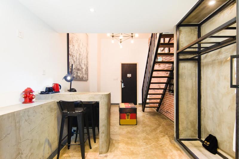 酒店位于海口市海甸岛和平大道(寰岛泰得酒店正对面),地理位置优越,周围餐饮、娱乐、购物等生活配套齐全,出行便利。 这是一家以乐享星球为主题的复古工业风精品酒店,是由景澜精品酒店管理有限公司旗下打造的品牌,采用了多样的设计风格。酒店现拥有全新装修各类不同风格的主题房间共40间客房,每间客房独具一格,可以满足亲子、情侣、商务等多种住宿需求。 酒店通过房间颜色、材质、饰品、挂画等细节的打造,使得每个房间具其特定的城市主题风格,让旅客们能够领略到不同纬度的独特风景,感受不同国度的人文艺术气息。在房型上酒店也提供了多种选择,有常规的单双标间;上下两层的复式LOFT;有阶梯式台阶房和下沉房;浪漫的主题大床浴缸房等。各个房间的大小布局各不一样,居住体验迥然不同,每一次入住,都能有新鲜的体验,每一次离开,都会有些许依依不舍。