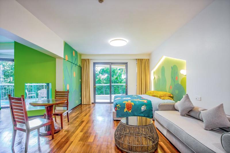 酒店位于亚龙湾国家旅游度假区亚龙湾中心广场旁,近爱立方滨海乐园。 酒店提供100万个家庭带娃的选择,拥有400多项儿童服务项目,每天约600个孩子住在这里,到处洋溢着孩子们欢乐的笑声。 酒店客房设计精巧,颇具热带休闲风格。对带孩子的客人来说,房间里的儿童浴袍与儿童拖鞋让人倍感贴心,房间免费提供婴儿车和婴儿床(数量有限需提前备注预约)、儿童拖鞋、儿童浴袍、儿童牙刷。每日丰富的儿童俱乐部亲子活动令每位小朋友不舍离开。 酒店拥有6大各具特色的水域,水上乐园、儿童泳池、环流河、恒温泳池满足您的各种喜好。大叶榄仁树绿荫下的儿童泳池和环流河,不用担心烈日,在这可以玩一整天。 广受小朋友们喜爱的是萌宠乐园,一片郁郁葱葱之中,绿孔雀、鸵鸟在悠闲漫步,鸭子在沐浴嬉戏,矮马,荷兰猪,天然呆. 在户外儿童乐园区,儿童城堡、儿童滑索、儿童绳塔、儿童秋千、儿童摇椅、大象摇椅、恐龙摇椅、木马跷跷板,让小朋友们乐翻天。深受小朋友喜欢的丛林穿越,来一场刺激的丛林探险。 酒店户外体验区,酒店为宝贝准备各种体验,儿童小火车、可爱动物花灯、吃奶鱼、圆木攀爬架、滑索等,宝贝可以畅玩乐园内的游乐设施,享受全天的充实。