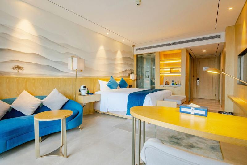 酒店坐落于既繁华却又不失宁静的凤凰路,前临湿地公园背靠葱郁青山,有着得天独厚的环境优势,让您独揽青山,茶歇湿地,体验“湿”“青”“花”“异”。 酒店以山水文化为中心,设计简单、雅致、轻奢,重点体现时尚品味,自然风情,内敛的气质和亲民的现代感。酒店设计更加融入“绿色、生态、环保、智能”的理念和创新,每间房均装有智能客控系统,为您的到来提供舒适豪华智能体验。客房整体装饰取材原木,以湿地山水为灵感,让您在每一处都能贴近自然,感受自然,享受自然。共同打造在有限的空间里追求无限的健康氛围。