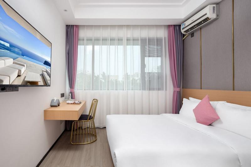三亚爱在海棠九号艺术酒店(海棠湾免税城店)是一家位于三亚海棠区龙海风情小镇的集现代艺术及其古典风格于一身的酒店,地理位置优越,毗邻海棠湾亚特兰蒂斯酒店、三亚国际免税城、海昌梦幻不夜城。宿在爱在海棠九号艺术酒店,住进阳光海水沙滩的浪漫里。 酒店设施齐全,提供免费停车场,自驾的朋友不用担心爱车的停放问题哦~这里有特具匠心的设计,从每个角度都能感受到设计师的用心,酒店多个区域为网红打卡点,适合旅拍,打卡等。每个房间都是经过精心设计和装饰的,非常典雅和舒适,使用了高品质的家具和装饰品,给人以舒适和温馨的感觉,酒店所有产品均清洗消毒保证品质。高清电视给您在休息时刻带来优质的感官享受。每间客房配有独立卫浴、高速wifi、24小时热水等基础设施一应俱全,床单布草等都是一客一换,均经过严格的消杀处理,为您的睡眠质量以及卫生安全提供了保证。我们店的宗旨是在为旅客营造多姿多彩的住宿体验,有任何问题联系前台随时为您提供服务,以帮助您探索酒店周边美丽景色。 如果可以,去三亚、去一湾椰子树三面环海的地方,去名叫自由的地方。把牵挂放下,找到自己,夜里栖息在爱在海棠九号艺术酒店,听夏夜的幽鸣,轻风吹过树叶的沙沙声。“诚信、亲切、有礼”,一切为了客人的满意!是我们爱在海棠九号艺术酒店一直坚守践行的服务理念,在日常的工作中我们秉承以“有限的服务 无限的热情”竭诚为每位宾客提供优质的旅居环境,衷心期待您的光临!