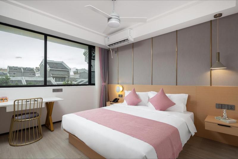 三亚爱在海棠九号艺术酒店(海棠湾免税城店)是一家位于三亚海棠区龙海风情小镇的集现代艺术及其古典风格于一身的酒店,地理位置优越,毗邻海棠湾亚特兰蒂斯酒店、三亚国际免税城、海昌梦幻不夜城。宿在爱在海棠九号艺术酒店,住进阳光海水沙滩的浪漫里。 酒店设施齐全,提供免费停车场,自驾的朋友不用担心爱车的停放问题哦~这里有特具匠心的设计,从每个角度都能感受到设计师的用心,酒店多个区域为网红打卡点,适合旅拍,打卡等。每个房间都是经过精心设计和装饰的,非常典雅和舒适,使用了高品质的家具和装饰品,给人以舒适和温馨的感觉,酒店所有产品均清洗消毒保证品质。高清电视给您在休息时刻带来优质的感官享受。每间客房配有独立卫浴、高速wifi、24小时热水等基础设施一应俱全,床单布草等都是一客一换,均经过严格的消杀处理,为您的睡眠质量以及卫生安全提供了保证。我们店的宗旨是在为旅客营造多姿多彩的住宿体验,有任何问题联系前台随时为您提供服务,以帮助您探索酒店周边美丽景色。 如果可以,去三亚、去一湾椰子树三面环海的地方,去名叫自由的地方。把牵挂放下,找到自己,夜里栖息在爱在海棠九号艺术酒店,听夏夜的幽鸣,轻风吹过树叶的沙沙声。“诚信、亲切、有礼”,一切为了客人的满意!是我们爱在海棠九号艺术酒店一直坚守践行的服务理念,在日常的工作中我们秉承以“有限的服务 无限的热情”竭诚为每位宾客提供优质的旅居环境,衷心期待您的光临!