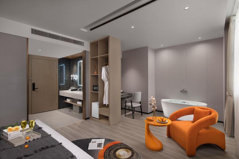 - 房间(开放): 楼 城景浴缸大床房(百寸巨幕投影+VIP影库随心看+冰箱)