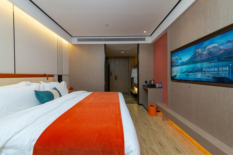 酒店位于铁机路长源东湖尚郡7栋,属于岳家嘴商务区,毗邻中北路金融街、楚河汉街商圈。地铁4号线直达,东临东湖旅游度假区、欢乐谷乐园。酒店的设计理念是新中式,还原东方美。所有客房均采用优质床品、全套高端草本精华洗浴用品,100M高速光纤全WFI覆盖,免费停车场等。酒店设有餐厅、配备高清LED显示屏的会议室 、洗烫烘干自助洗衣房、设备精良的健身房、及阅读会友大堂吧、为中高端商旅人士打造理想的住宿体验。能够在这里休憩、充电、得到心灵上的放松。房间全智能设备,小度语音控制房间各处细节,设施细致温馨的服务,给你带来“自然、静谧、温暖、朴实"的健康方式。
