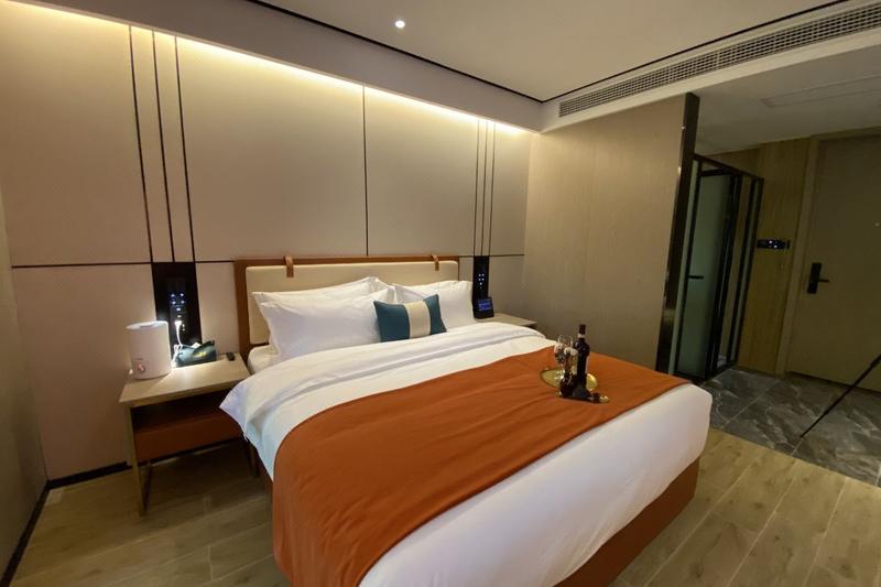 酒店位于铁机路长源东湖尚郡7栋,属于岳家嘴商务区,毗邻中北路金融街、楚河汉街商圈。地铁4号线直达,东临东湖旅游度假区、欢乐谷乐园。酒店的设计理念是新中式,还原东方美。所有客房均采用优质床品、全套高端草本精华洗浴用品,100M高速光纤全WFI覆盖,免费停车场等。酒店设有餐厅、配备高清LED显示屏的会议室 、洗烫烘干自助洗衣房、设备精良的健身房、及阅读会友大堂吧、为中高端商旅人士打造理想的住宿体验。能够在这里休憩、充电、得到心灵上的放松。房间全智能设备,小度语音控制房间各处细节,设施细致温馨的服务,给你带来“自然、静谧、温暖、朴实"的健康方式。