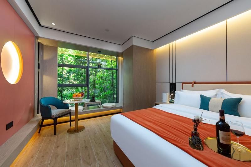 酒店位于铁机路长源东湖尚郡7栋,属于岳家嘴商务区,毗邻中北路金融街、楚河汉街商圈。地铁4号线直达,东临东湖旅游度假区、欢乐谷乐园。酒店的设计理念是新中式,还原东方美。所有客房均采用优质床品、全套高端草本精华洗浴用品,100M高速光纤全WFI覆盖,免费停车场等。酒店设有餐厅、配备高清LED显示屏的会议室 、洗烫烘干自助洗衣房、设备精良的健身房、及阅读会友大堂吧、为中高端商旅人士打造理想的住宿体验。能够在这里休憩、充电、得到心灵上的放松。房间全智能设备,小度语音控制房间各处细节,设施细致温馨的服务,给你带来“自然、静谧、温暖、朴实"的健康方式。