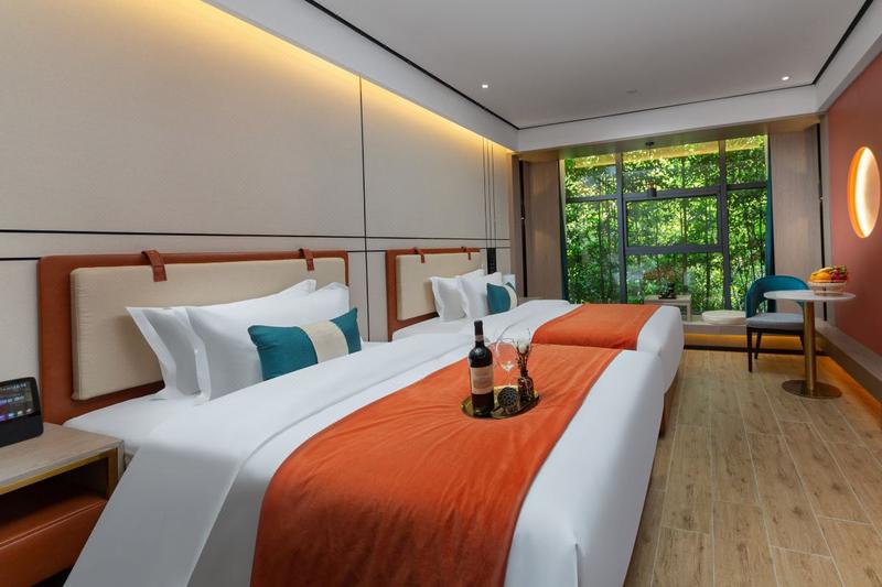 酒店位于铁机路长源东湖尚郡7栋,属于岳家嘴商务区,毗邻中北路金融街、楚河汉街商圈。地铁4号线直达,东临东湖旅游度假区、欢乐谷乐园。酒店的设计理念是新中式,还原东方美。所有客房均采用优质床品、全套高端草本精华洗浴用品,100M高速光纤全WFI覆盖,免费停车场等。酒店设有餐厅、配备高清LED显示屏的会议室 、洗烫烘干自助洗衣房、设备精良的健身房、及阅读会友大堂吧、为中高端商旅人士打造理想的住宿体验。能够在这里休憩、充电、得到心灵上的放松。房间全智能设备,小度语音控制房间各处细节,设施细致温馨的服务,给你带来“自然、静谧、温暖、朴实"的健康方式。