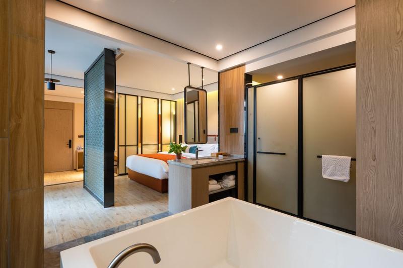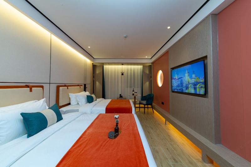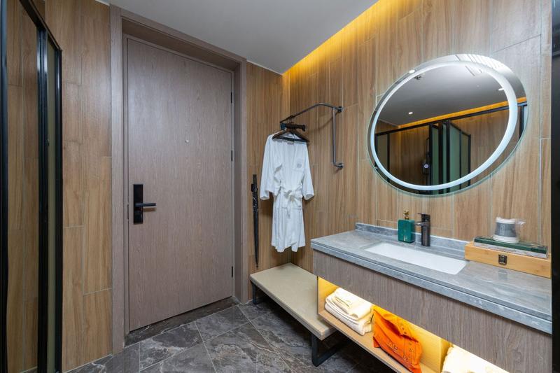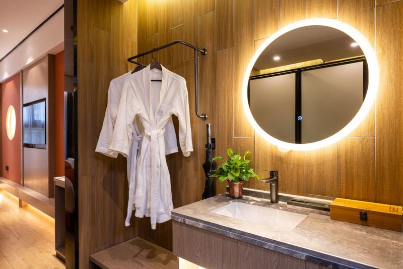 酒店位于铁机路长源东湖尚郡7栋,属于岳家嘴商务区,毗邻中北路金融街、楚河汉街商圈。地铁4号线直达,东临东湖旅游度假区、欢乐谷乐园。酒店的设计理念是新中式,还原东方美。所有客房均采用优质床品、全套高端草本精华洗浴用品,100M高速光纤全WFI覆盖,免费停车场等。酒店设有餐厅、配备高清LED显示屏的会议室 、洗烫烘干自助洗衣房、设备精良的健身房、及阅读会友大堂吧、为中高端商旅人士打造理想的住宿体验。能够在这里休憩、充电、得到心灵上的放松。房间全智能设备,小度语音控制房间各处细节,设施细致温馨的服务,给你带来“自然、静谧、温暖、朴实"的健康方式。