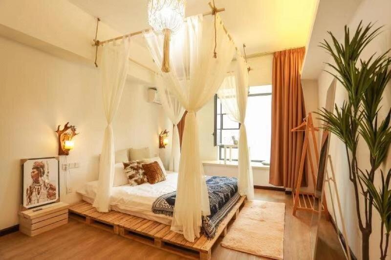 酒店地处武汉市武昌区楚河汉街万达广场,烟霞路和松竹路交汇处的环球国际中心,临近地铁4号线楚河汉街站C出口。酒店楼下即是楚河汉街,右侧即是万达广场,左邻沙湖右临东湖,地理条件得天独厚。酒店距离司门口户部巷、昙华林、黄鹤楼、东湖、江汉路步行街即可抵达。 酒店装修风格为北欧和轻奢风格,不仅有大屏高清投影、百兆光纤、按摩椅、吊椅、高星级床上用品,且有红绿茶包,咖啡包,矿泉水等众多免费消费品,还有如空气净化器、儿童拖鞋、雨伞等免费暖心服务,更有沙湖和楚河汉街景色美轮美奂。