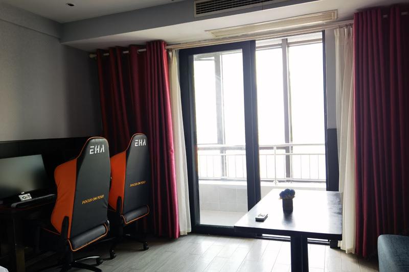 酒店位于武昌区积玉桥和平大道绿地财富中心水岸国际瞰江公寓16楼, 酒店是武汉一家以电竞元素加客房住宿为一体的新型住宿模式下的酒店,既有高端的成套电脑设备,又有清新的独立空间,E+电竞酒店的配置都是个个拔尖的设备。处理器:i5 7400,显卡:技嘉/华硕1060 5G,内存16G。血手顶配鼠标键盘耳机搭配32寸曲面144HZ电竞显示屏,全场傲风电竞椅,多种房间种类可以选择。情侣上分间,好基友双排间,电灯泡三人间,吃鸡四黑间,英雄联盟五黑间,守望先锋六黑间。