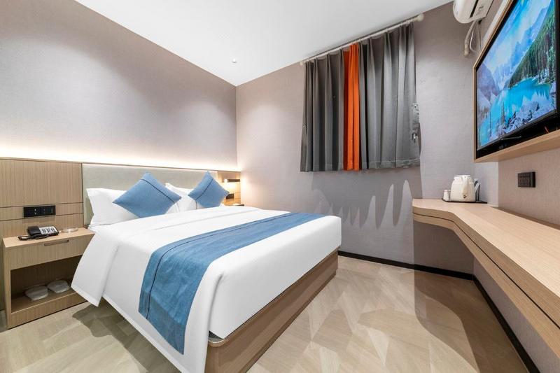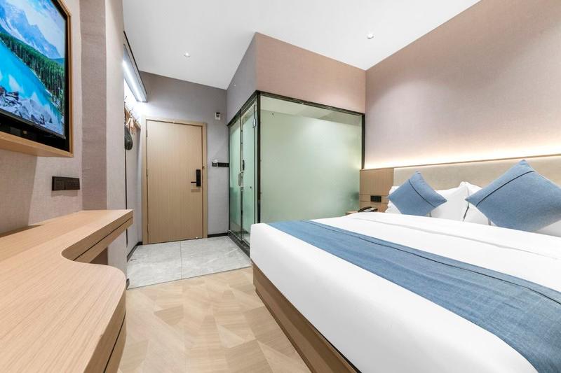 ♥全国知名连锁♥免费自助洗烫烘衣♥机器人♥免费健身房♥免费百宝箱♥免查房♥矿泉水免费畅饮♥ 【地理位置】本店位于武汉市盘龙城经济开发区宋岗二路,交通便利,紧靠地铁二号线宋家岗站和机场高速,驱车前往天河国际机场仅15分钟。到汉口火车站仅20分钟车程。 【酒店亮点】全国知名连锁,免费停车场,百寸巨幕投影,免费健身房(跑步机,哑铃,仰卧起坐机等),免费自助洗衣,全景阳光窗户,乳胶床垫,免押金免查房,负离子空气净化,免费矿泉水畅饮,免费大厅小零食,免费独立包装一次性口罩,免费提供满足日常生活用品需求的百宝箱(指甲刀,卸妆布,眼镜纸,发卡,启瓶器,针线包等等),免费机器人服务,送餐送物带客进房。 【周边配套】著名的购物商场--奥特莱斯距离酒店驾车仅5分钟。驱车前往武汉城市之根盘龙城遗址公园只需15分钟,游城市之根,品武汉文化。配套三峡人家特色餐饮店,飞尚国际影城(奥特莱斯店),常青麦香园早餐店,吾厨鱼头泡饭,加油站,兴业银行,农业银行,维民大药房,周边分布佳海工业园,梦卓名工业园,盘龙工业园,俊珲工业城等大大小小的工业城。 【设施介绍】本店是一家多功能酒店,拥有各种类型的客房,百寸巨幕投影房,豪华大床房,高级双床房,亲子房,棋牌套房。配套餐厅,会议室,健身房,洗衣房。零压床垫,高速WIFI,5秒出热水,本店是您旅游度假,转机换乘,居家旅行,公务出差的理想之选。