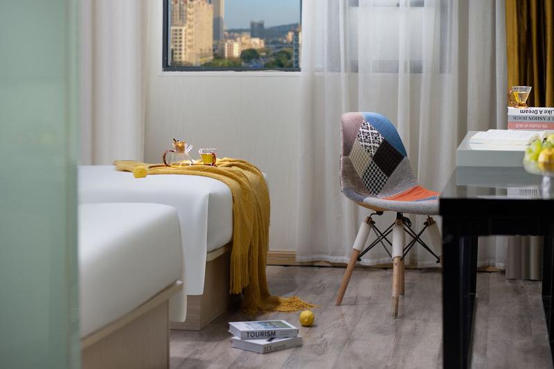 【地理位置】本店坐落在汉口北生活区(天河国际机场),酒店在武汉占尽地理之宜。酒店位于离武汉天河国际机场大约30min。只需步行至兴业路地铁站,可以很便捷的到达城市的各个角落。对于入住酒店的旅客来说,闲暇时间去附近的古德寺和武汉海昌极地海洋世界游玩是一个不错的选择。 【酒店风格】客房布置简约温馨,舒适干净,给您的旅程一个安静的休息环境。 【酒店设施】客房内洗漱用品均为一次性用品,所有床上用品均用高温清洗,保证一客一换,干净卫生,酒店内24小时热水,独立空调。 【酒店环境】旅客可以在闲暇时间去酒店的休闲区,提升健康幸福感。