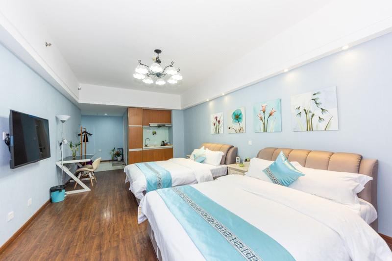 酒店位于沌口开发区东风大道经开万达广场写字楼B2栋13楼(近体育路),背靠万达广场,面向太子湖,东侧318国道,西临东风大道东风汽车公司总部,距离江汉大学步行约15分钟左右即可到达,附近花博汇驾车15分钟,楼下就是体育中心,楼下几分钟的路程就是公交站和地铁站,地理位置优越,出行非常方便。酒店设施完善,冰箱、洗衣机一应俱全,是您商务出行及旅游的首选之地。