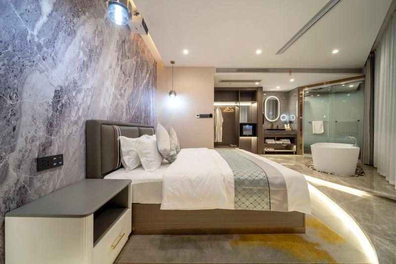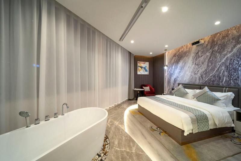 酒店是一家智能型酒店,位于蔡甸区奓山街108号。酒店引进了房间设施全智能化管理和使用系统,灯光、电器、窗帘等全部可语音控制,还配备了电辅热马桶、即热即饮净水系统,24小时热水、无线网络、大量免费停车等高新设备。