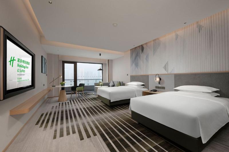 武汉国博套房假日酒店坐落于长江之畔,与武汉国际博览中心仅步行的距离。酒店左邻鹦鹉洲和杨泗港长江大桥,右邻白沙洲长江大桥。周边毗邻归元寺、晴川阁、武汉动物园、古琴台、龟山电视塔等景点。距离永旺梦乐城购物中心仅10分钟车程。距离酒店周边便捷的交通枢纽连接武汉三镇,让您出行无忧,尽享旅途快乐。 酒店客房宽敞舒适的空间给您带来家的舒适体验。江景房可以欣赏长江的波澜壮阔,城景房可俯瞰汉阳国博新城全貌。 嗨碗餐厅提供健康丰盛的自助早餐以及精心烹饪的零点菜肴。假日酒店品牌推出了大胆而令人兴奋的新美食理念,用五颜六色的碗盛上美味的中西式佳肴,为您带来一次有趣的美食探险。 酒店一楼雅静怡人的大堂吧,供应香醇咖啡、特色下午茶、鸡尾酒、葡萄酒等缤纷饮品及精致小食,为您休闲放松或商务会晤增添惬意之享。 健身房配备先进的健身器材,此刻卸下工作挥汗如雨,尽情释放压力。移步位于武汉洲际酒店G层的室内恒温游泳池,与亲朋放松,与孩子共享亲子之乐。