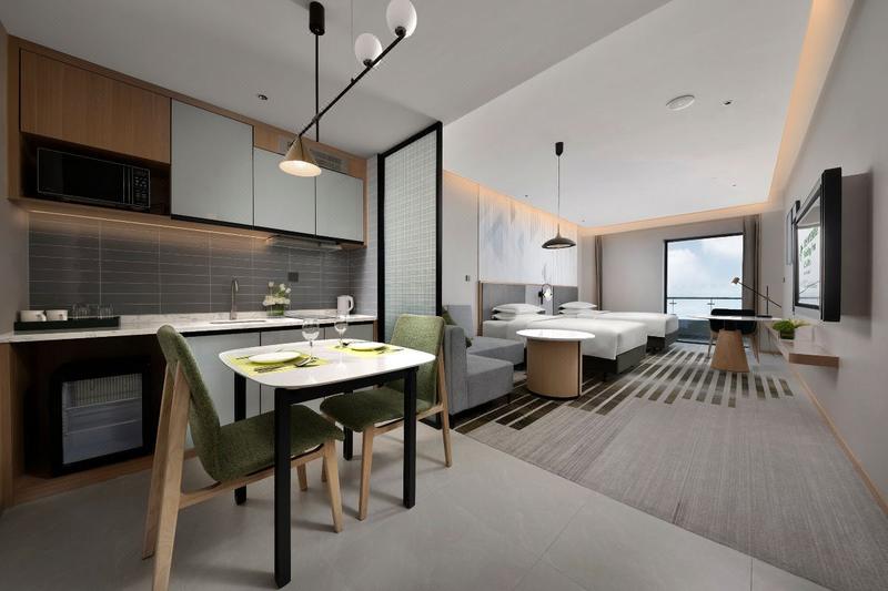 武汉国博套房假日酒店坐落于长江之畔,与武汉国际博览中心仅步行的距离。酒店左邻鹦鹉洲和杨泗港长江大桥,右邻白沙洲长江大桥。周边毗邻归元寺、晴川阁、武汉动物园、古琴台、龟山电视塔等景点。距离永旺梦乐城购物中心仅10分钟车程。距离酒店周边便捷的交通枢纽连接武汉三镇,让您出行无忧,尽享旅途快乐。 酒店客房宽敞舒适的空间给您带来家的舒适体验。江景房可以欣赏长江的波澜壮阔,城景房可俯瞰汉阳国博新城全貌。 嗨碗餐厅提供健康丰盛的自助早餐以及精心烹饪的零点菜肴。假日酒店品牌推出了大胆而令人兴奋的新美食理念,用五颜六色的碗盛上美味的中西式佳肴,为您带来一次有趣的美食探险。 酒店一楼雅静怡人的大堂吧,供应香醇咖啡、特色下午茶、鸡尾酒、葡萄酒等缤纷饮品及精致小食,为您休闲放松或商务会晤增添惬意之享。 健身房配备先进的健身器材,此刻卸下工作挥汗如雨,尽情释放压力。移步位于武汉洲际酒店G层的室内恒温游泳池,与亲朋放松,与孩子共享亲子之乐。