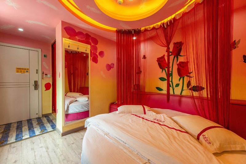 - 房间(开放): 楼 激情玫瑰圆床房