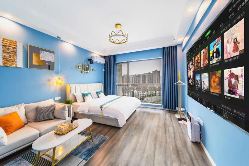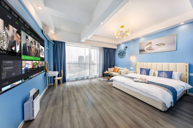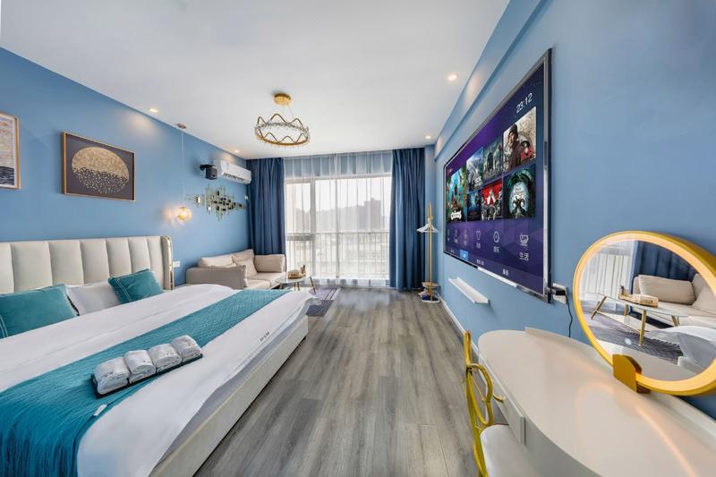 酒店位于武汉市江夏区藏龙岛光谷大道光谷青年汇,武汉传媒学院正门对面,2分钟即达武汉软件工程学院,湖北经济学院等知名院校环绕四周,靠近光谷大道高架,出行方便,武汉地铁2号线秀湖站A出口步行三分钟即到。酒店周边交通便利。毗邻武汉光谷金融港商圈,百捷科技园百度大厦,烽火科技集团等知名园区和企业,楼下商业、餐饮、娱乐配套设施齐全,有星巴克,肯德基,麦当劳,老乡鸡,屈臣氏,聚贤庄火锅,炅爸爸,江户前寿司等众多知名餐饮,更有海伦斯酒吧,金逸影城,潮派KTV,是您商务旅游及休闲娱乐下榻的理想选择。 酒店客房设施配套齐全,24小时热水,wifi空调等一应俱全,所有房间均配备120寸高清投影设备,1.8米大床,乳胶床垫,更有可以观赏风景的全落地大窗,让您一身轻松。经过一座城,寻觅一间房,消去您满身的疲劳,酒店将以热情的服务,舒适的房间,期待您的到来。酒店,在这里,等您来。
