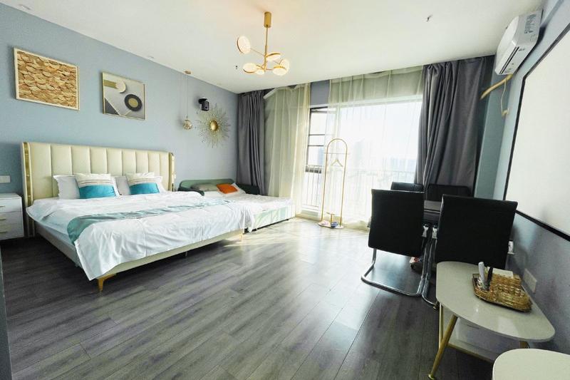 酒店位于武汉市江夏区藏龙岛光谷大道光谷青年汇,武汉传媒学院正门对面,2分钟即达武汉软件工程学院,湖北经济学院等知名院校环绕四周,靠近光谷大道高架,出行方便,武汉地铁2号线秀湖站A出口步行三分钟即到。酒店周边交通便利。毗邻武汉光谷金融港商圈,百捷科技园百度大厦,烽火科技集团等知名园区和企业,楼下商业、餐饮、娱乐配套设施齐全,有星巴克,肯德基,麦当劳,老乡鸡,屈臣氏,聚贤庄火锅,炅爸爸,江户前寿司等众多知名餐饮,更有海伦斯酒吧,金逸影城,潮派KTV,是您商务旅游及休闲娱乐下榻的理想选择。 酒店客房设施配套齐全,24小时热水,wifi空调等一应俱全,所有房间均配备120寸高清投影设备,1.8米大床,乳胶床垫,更有可以观赏风景的全落地大窗,让您一身轻松。经过一座城,寻觅一间房,消去您满身的疲劳,酒店将以热情的服务,舒适的房间,期待您的到来。酒店,在这里,等您来。