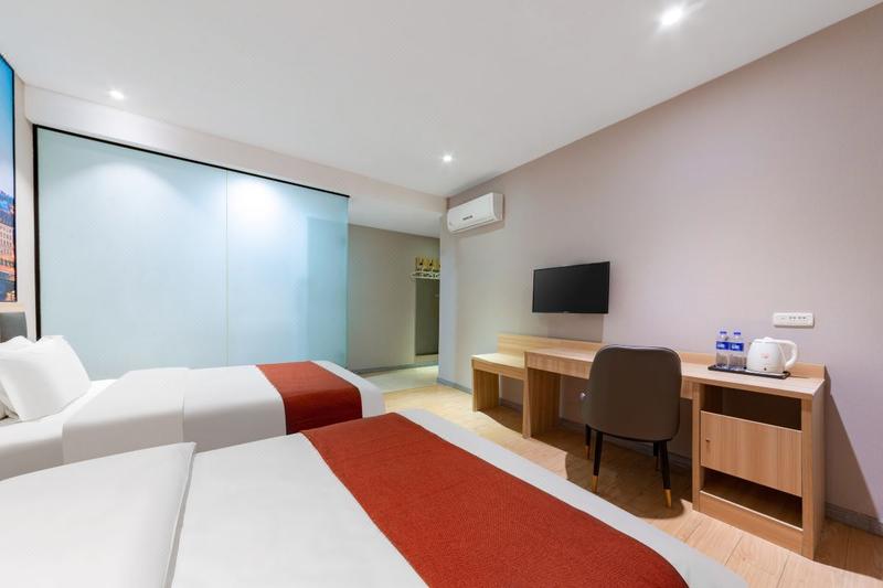 酒店地处武汉市江汉区财神广场,与汉口火车站广场连为一体,距离或者站进站仅需3分钟路程。酒店交通便利,设施齐全,环境优雅,是您旅游出差的理想之地。酒店位于武汉财神广场,拥有各类房型包括单人间,大床房,商务房,双人间,豪华大床房等。酒店可提供免费行李寄存服务,还提供物品邮寄,网络查询预定等综合服务功能,让您感受到回家一般的便捷与温馨。 酒店客房装饰精致舒适。