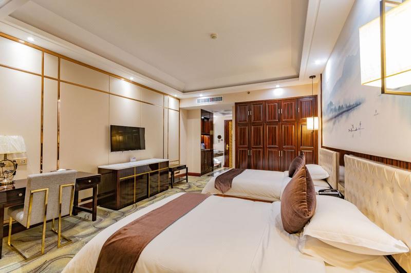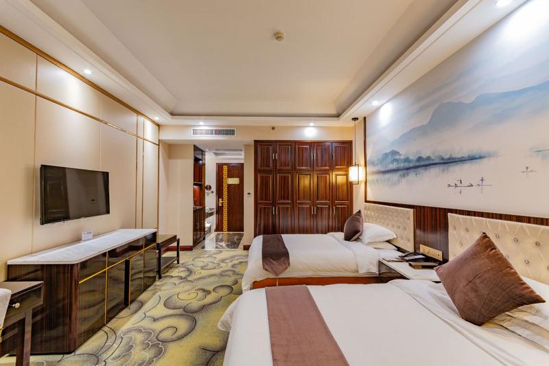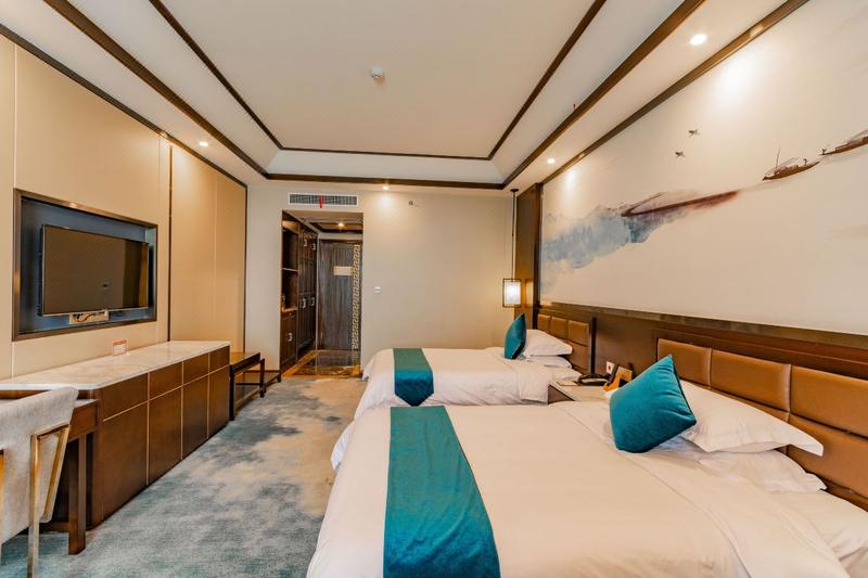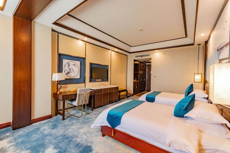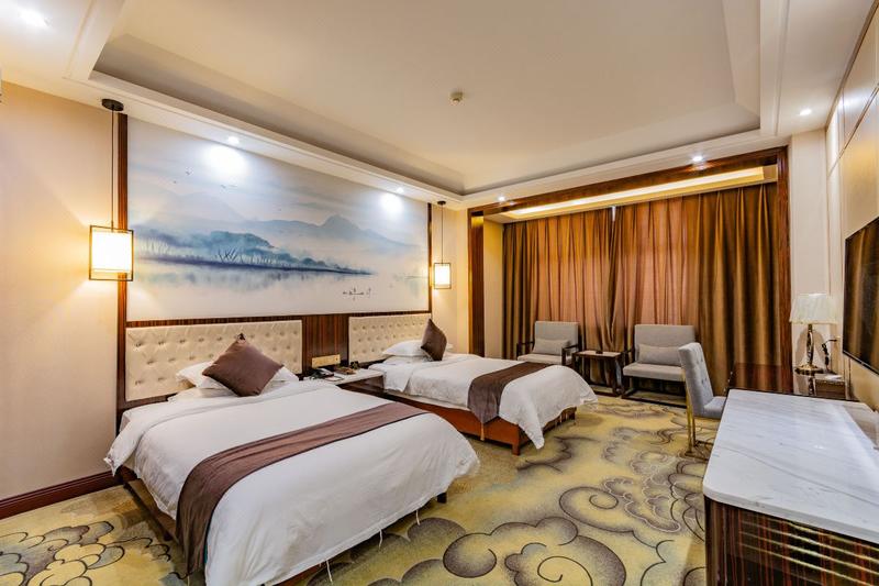 武汉木兰水镇大饭店是黄陂区集商务住宿、会议旅游、休闲度假、餐饮娱乐于一体,规划占地近8000平方米,建筑面积30000 平方米。拥有同时容纳800人的大宴会厅以及400人的小宴会厅、并配有1400平方米的多功能厅、100人的自助餐厅,600平方米的空中花园,可承办各类不同规模的会议、宴席、冷餐酒会,满足宾客多元化的商务需求。同时还配有棋牌室、健身房、休闲中心,可满足不同宾客的娱乐喜好。酒店配有地面、地下停车位共计240个,为休闲入住者营造一个尊贵、舒适、精致的酒店。