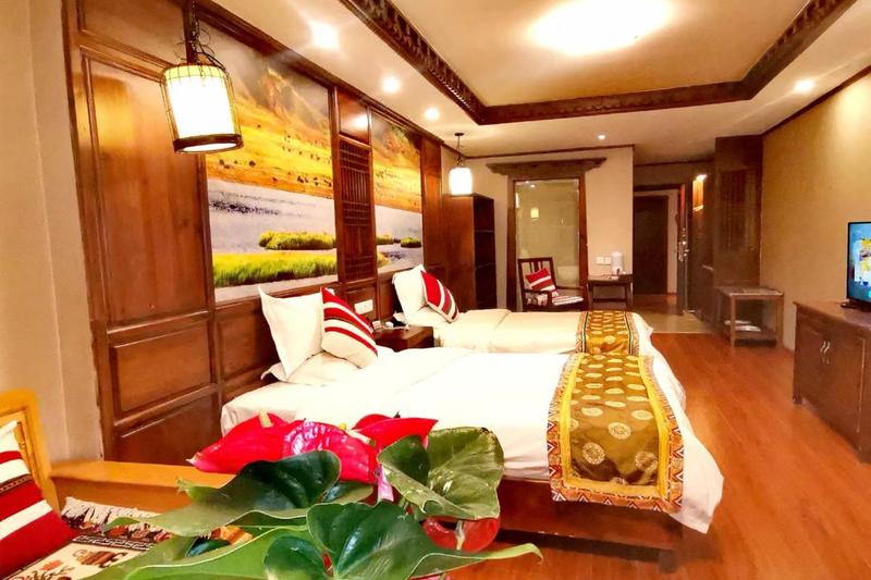 香格里拉瑞丰印象酒店位于香格里拉市,与独克宗古城毗邻,交通十分便利。 酒店的装潢极富藏式风情,客房又大又舒适,舒适柔软的大床、干净的洗浴间、空调、电视等齐备。营养丰富的早餐为你开启活力的一天;还有停车场,供自驾游旅客停放爱车。